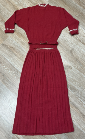 There were also some really cute details that were included to create cohesive looks that are worth bringing up. First, there was the use of Victorian bodice silhouettes that were drawn in at the waist and had a close fit of the hips. We also saw feminine style blouses that had ruffles, bows, or eyelet fabric details, as well as embellishments on garments such as beading, fringe, and large brooches. Other soft style details were matching two-piece sets, mainly a matching skirt and either a sweater or jacket, but we did also see combinations of matching vest and pants sets.